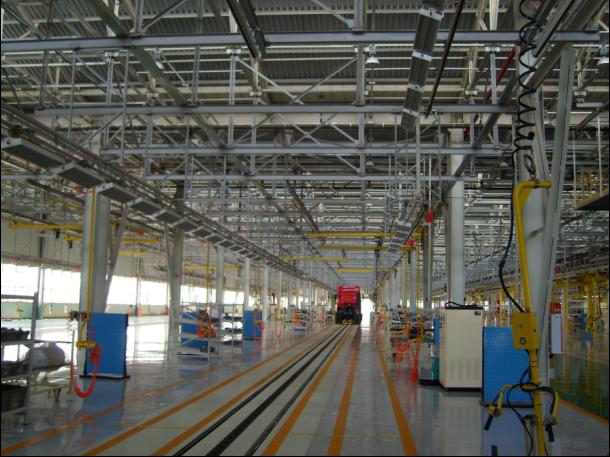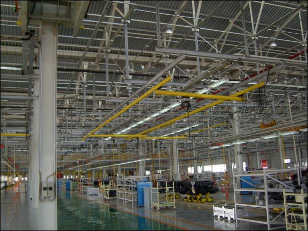 工程內(nèi)容:(總裝車間)二次工藝鋼結(jié)構(gòu)、KBK柔性系統(tǒng)和電動(dòng)葫蘆、裝配機(jī)械手、崗位照明系統(tǒng)、工藝管路系統(tǒng)等